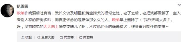 欧弟离开《天天向上》酒后吐真言 被真相 电影搜查队 港台男星 2016-05-09 17:16:50 577 创作不易,用心坚持,欢迎请BaGua喝几杯爱心咖啡!打赏并支持本文 打赏并删除本文 湖南卫视《天天向上》自2008年开始逐步形成由汪涵 欧弟 钱枫 俞灏明 金恩圣 田源 矢野浩二七位成员所组成的'天天兄弟“一度拿下湖南卫视收视率而《天天向上》最新改版的天天兄弟汪涵 钱枫 大张伟 王一博已不见 欧弟 俞灏明 矢野浩二 田源的身影令一大片网友直接哭倒一片6日晚,欧弟发长文把明星比作黄金猎犬,疑酒后吐真言可是当天微博 瞬间地被秒删欧弟自08年加入《天天向上》至今已有八个年头了《天天向上》节目改版,4月25日官方曝出的宣传海报中没有欧弟对此,欧弟并没有在公开场合谈起具体原因而昨晚 在微博发出的博文疑似解释了其退出了天天兄弟的具体原因欧弟第一条在深夜发出欧弟第二条则站出来解释可是奇怪的是 解释完之后 并没有让这条微博留存着 而是选择秒删 找不回来了一瞬间微博都炸翻天了主持人从最初的七个变成了四个汪涵确实是我最喜欢的主持人了,但天天兄弟还有浩二,灏明,欧弟,田源,还有服役的小五那时的舞台还像一间教室,有课桌,有黑板,有数不尽的欢声笑语。汪涵在作客某网络对话时亲自证实欧弟将不会离开无论如何 曾经的还兄弟现在变成这样,实在唏嘘不已,希望欧弟还能回到天天向上的舞台图文来源于网络,版权归原作者所有,如有侵权请及时联系我司做删除处理 创作不易,用心坚持,欢迎请BaGua喝几杯爱心咖啡!打赏并支持本文 打赏并删除本文 感谢您的支持鼓励,我会继续努力的!文章地址:用户邮箱:打赏金额:USDT 请输入数字点击”去打赏“,即可进行打赏支持本文章哦 欧弟 About the Author 电影搜查队 功能介绍:运动是一切生命的源泉,静止便是死亡,只有运动才能敲开生命的大门. Related Posts 梁朝伟和张国荣之间的痴缠,躲不过的春光乍泄(腾讯视频... 2016-08-23 17:27:14 欧弟离开《天天向上》酒后吐真言 被真相 2016-05-09 17:16:50 Bigbang在天津逛街引围观?oh my god这是要哪样? 2016-04-03 17:35:35 天啦噜!最近大热的宋智孝竟然还拍过如此大尺度的电影?... 2016-03-25 18:03:16 发表评论