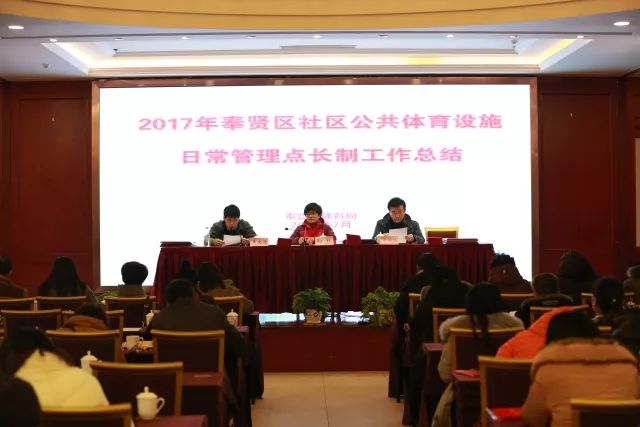 2月12日下午,2017年奉贤区社区公共体育设施日常管理点长制工作总结会在小木屋培训中心顺利召开。各镇、街道、开发区、社区社事中心主任(科长)、体育干部,2017年奉贤区社区公共体育设施日常管理先进单位负责人、十佳优秀点长、百名优秀点长等参加了会议。