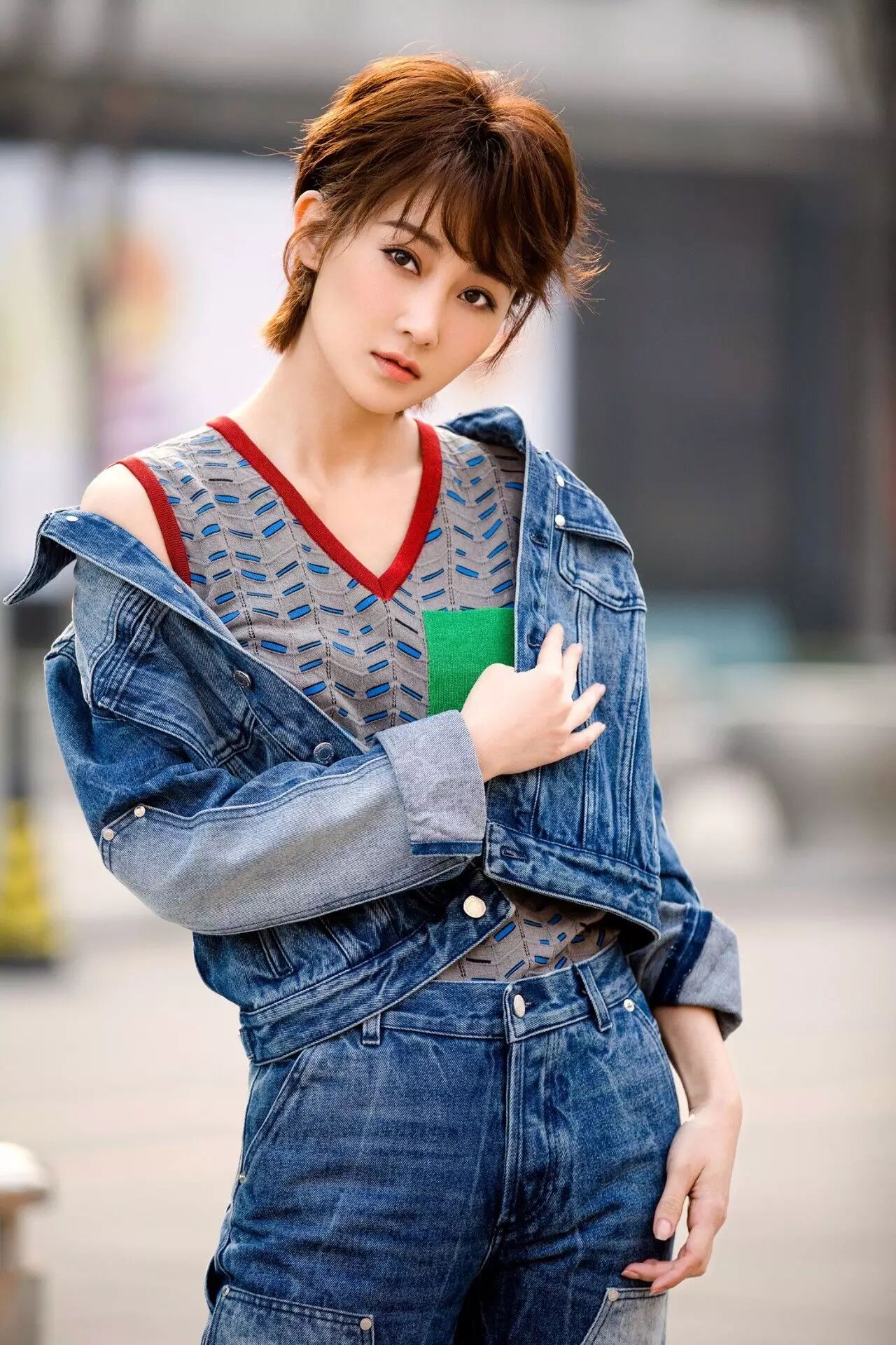 林鹏随性刘海搭配初春正in的淡色妆容,完美诠释出柔情与率性结合的复古牛仔风情,轻松玩转时髦休闲风。