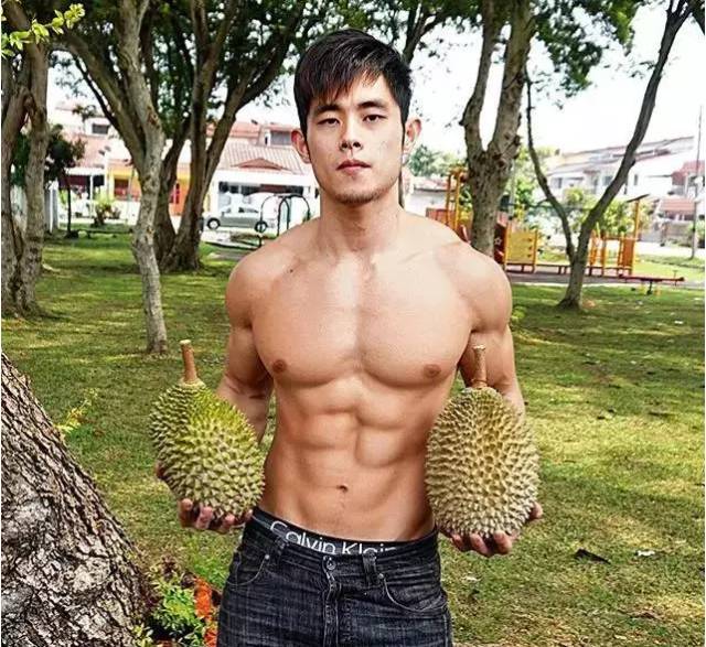 原来这位小哥也是有来头的,他名叫Jordan Yeoh,是马拉西亚一位健身教练兼模特,凭借自己阳光肌肉的形象,一次在帮街边阿伯阿妈卖榴莲的时候被顾客们围观,结果你懂的,火了!如今,他的社交账号上,每天的粉丝都疯长,女孩们纷纷留言说“吃什么榴莲,我要吃六块腹肌”,呃。。。