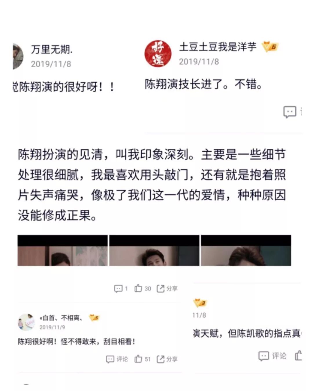 陈翔,让我们看到了一个更虚心更踏实的艺人,他在不断积累,不断沉淀,坚定地走着自己脚下的路,未来可期!