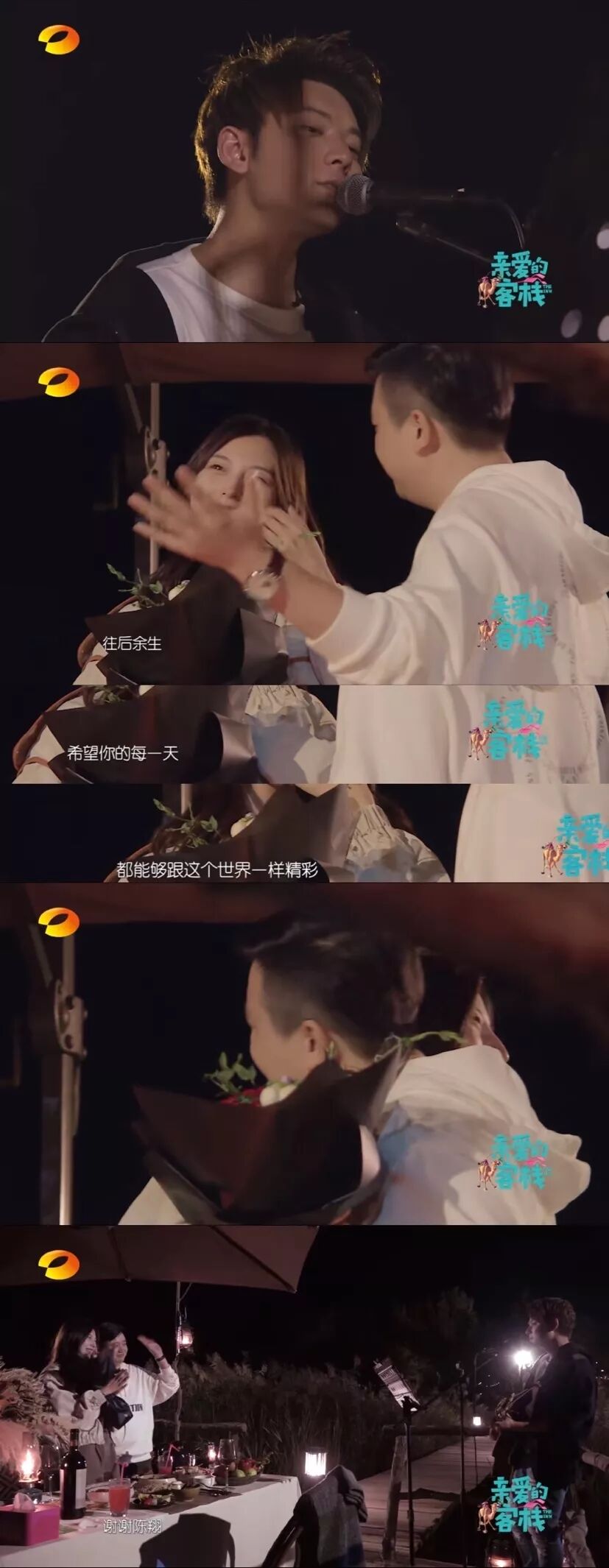 《亲爱的客栈》终究是一档暖心的节目,客人们带来的故事会激起观者的一些共鸣和温暖的情绪。节目中男生对女生的告白,嘉宾们集体助力,陈翔更是自弹自唱,制造表白气氛,有一种治愈的美好的感觉。