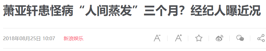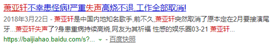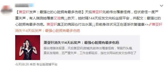 当时就有消息称,萧亚轩患上怪病,经常剧烈头痛,莫名发高烧,而且严重失声,工作几乎全部推掉