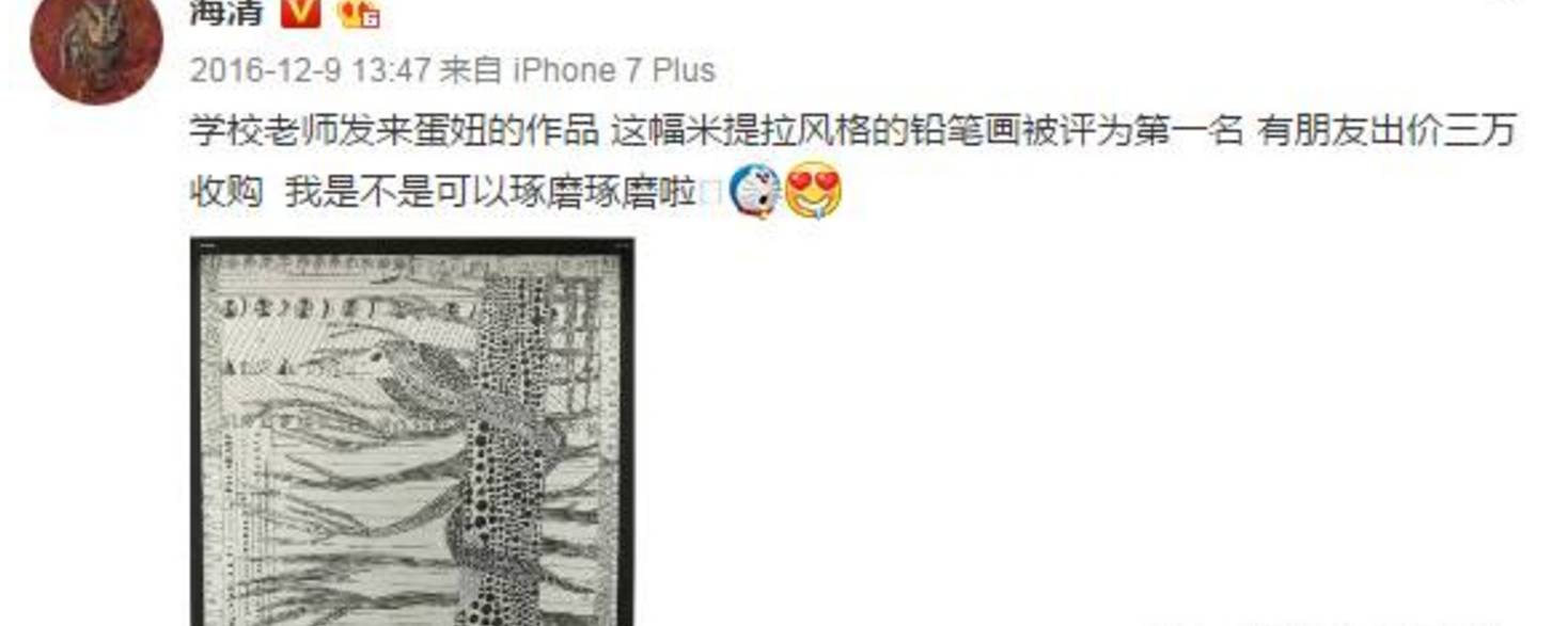 海清平日里也都会在微博分享一些儿子近期的“作品”,每一条里都透露着她的骄傲和蛋妞的聪明好学。