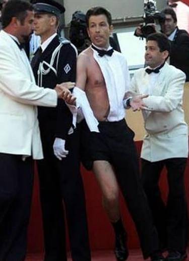 在第55届戛纳国际电影节上,精心装饰一番的法国电视喜剧演员达恩·博伦德准备参加一部影片的展映仪式,本想成为全场焦点,不料玩笑开大,竟然半裸出场,随后被保安人员迅速“请”出会场。