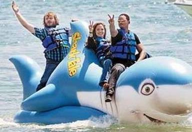 第57届的戛纳电影节上,威尔·史密斯、安吉丽娜·茱莉、杰克·布莱克携《鲨鱼故事》亮相,拒绝红地毯的三位明星大搞创意改走了水路,骑着鲨鱼搞笑入场,瞬间亮瞎人眼。