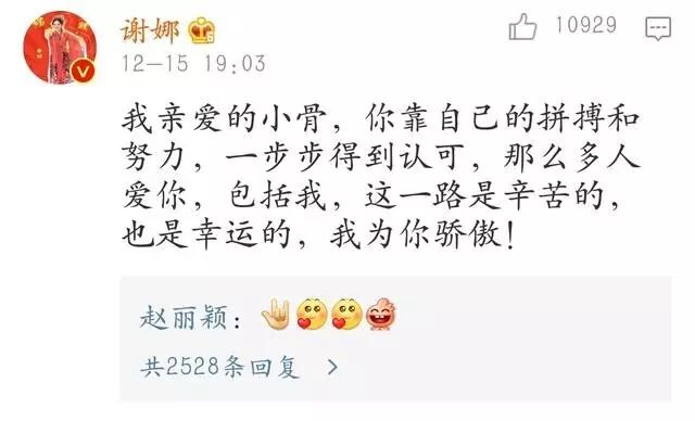 不过谢娜也留言鼓励赵丽颖这一路走来很辛苦,但同时很为她感到骄傲。