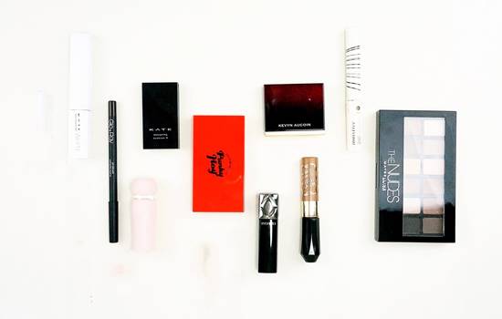 悦诗风吟睫毛膏、美宝莲十二色眼影盘、kiss me染眉膏、ka修容粉、esrique口红be852、KATE三色眉粉、punky hoy眼影盘02、爱丽小屋芭蕾口红、glo&ray眼线胶笔、kate睫毛打底膏。