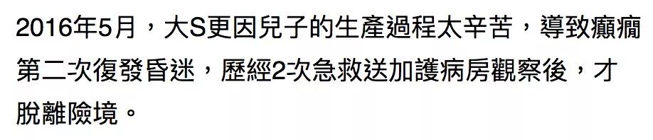 大S说,生孩子的时候自己因为身体状况,医生不敢打止痛药。