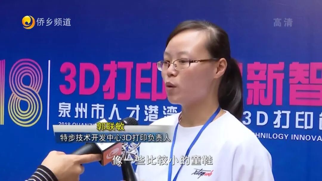 特步技术开发中心3D打印负责人 郭联敏:我们还会做一些前期的试穿,特别是童鞋像一些比较小的童鞋脚模我们就是用打印出来的,然后实际运用到产品中可以做到试穿,为前期节约很多的时间,工作也会带来一些便利,鞋上面一些logo 可以做到定制化的一些产品,像鞋上面logo写一些名字这些东西通过3D打印是很便利的。