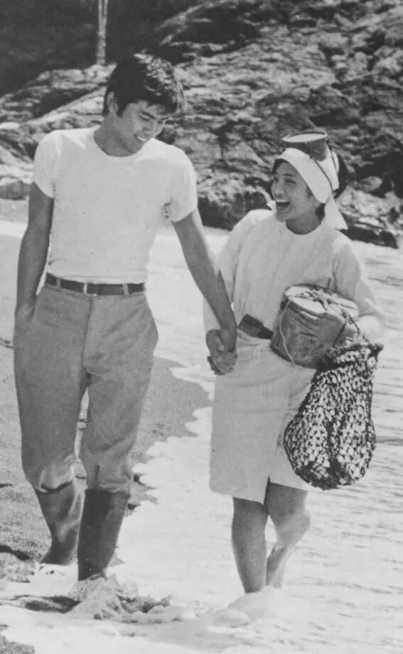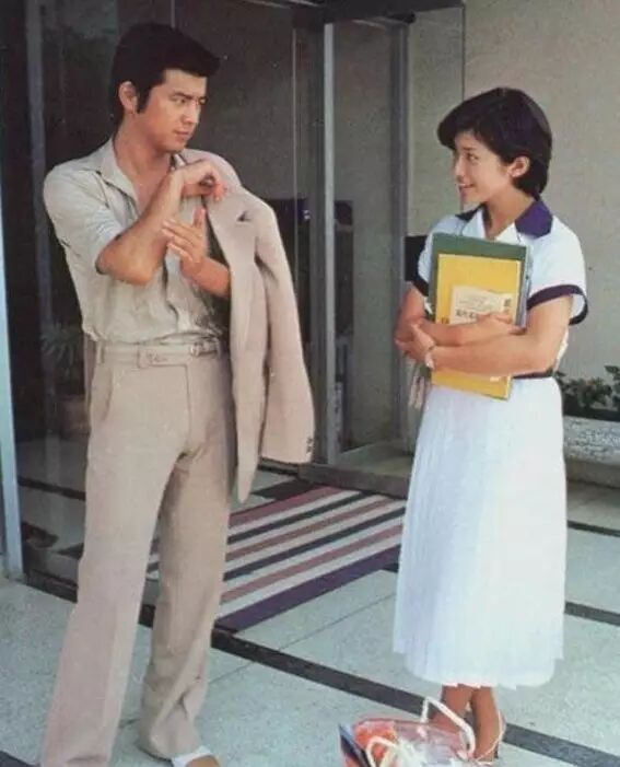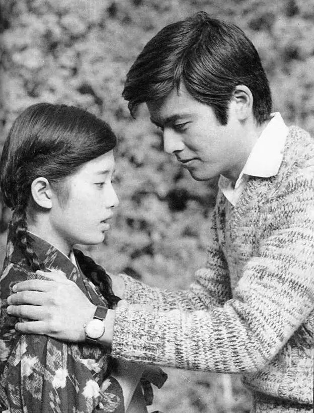 第一次和三浦友和见面,山口百惠才15岁,小圆脸,小虎牙,一脸稚气,有着灿烂无敌的甜美微笑,年纪虽然小,但已是“明星诞生”节目的季军,并出版了两张唱片,深受好评。而三浦友和则正值22岁的青春好年华,已经演出了好几部电视剧,虽然角色都不大,不过也小有名气。两个人一起拍摄了格力高的电视广告,情侣形象很受好评。