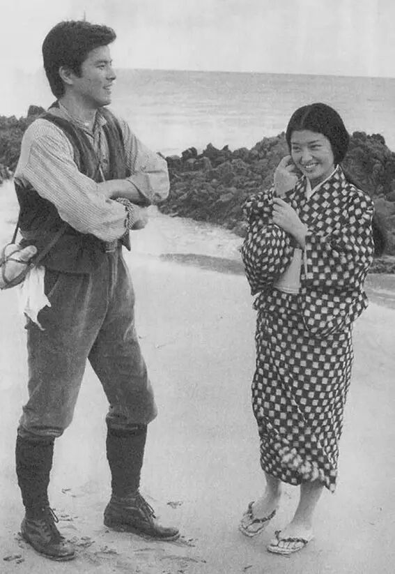真正改变他的是与她合作的第一部电影——《伊豆的舞女》。主演事先就预定了是她,采取海选的方式选拔男主角。导演西河克己坚持要用一个有一点表演经验的人,在看过他们俩拍摄的这部广告后,坚决要求由他出演,甚至说:“不用他,我就不当这个导演了。”