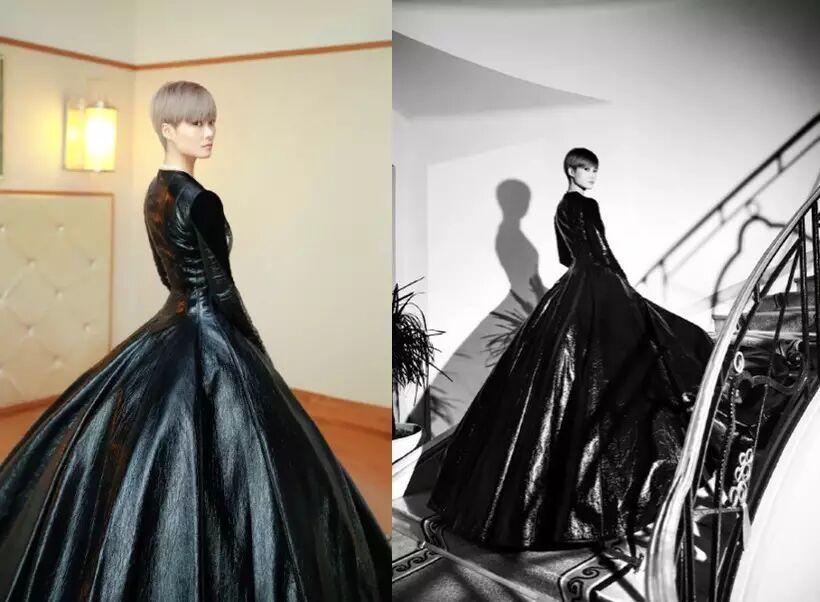 女王范儿十足的黑天鹅礼服让她看起来腿长五米!