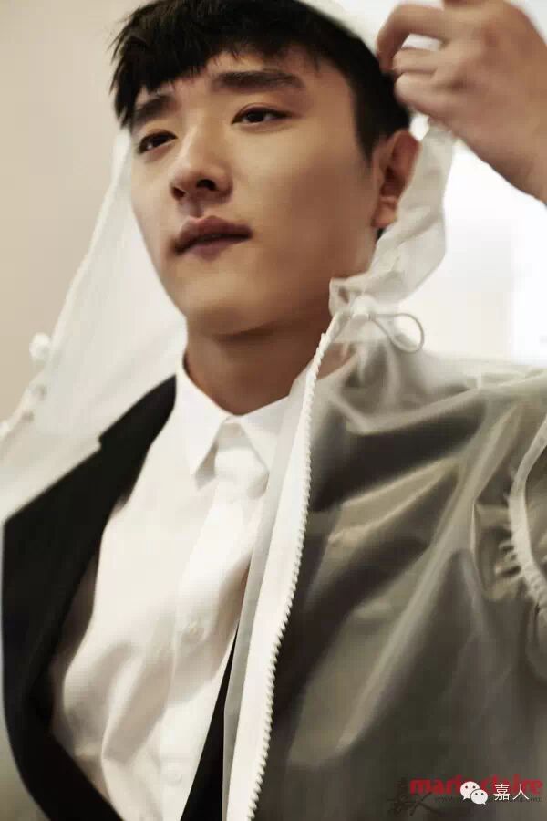 人常说,耍帅必备是西装,西装标配是鲜肉,这话不假。但是,最常规的白衬衫黑西装对肤色体型要求其实最严苛,腰粗崩扣子,腿短堆裤边,肩窄没气场,颈短显脸大,白显腻,黑显脏,帅哥秒变服务生。而于小彤的一切却刚刚好,年轻蓬勃的朝气没因为“白加黑”而削弱一丁点儿,反而更显干净利落,西装的严肃和于小彤的清新产生了微妙的化学反应,外罩透明连帽风衣,这雨衣虽高级,气质若是太接地气,多说也无益,而在于小彤的穿搭却饱含时装搭配的趣旨——虽说西装应该配大衣,可保守却无趣,不如索性小鲜肉披雨衣,颜帅还有好气质,浑身写满活力与创意。