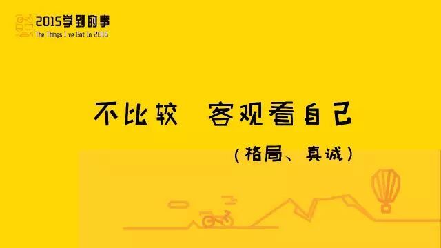 大家都知道,我不是一个在很多方面都出类拔萃的人,整个成长过程更像是丑小鸭的蜕变,现在还在路上的状态。过去我更多的是懊恼,或者不解为什么自己是如此的际遇,醒悟得这么晚,在2015年我很大的变化就是接受了我自己。全然地接受自己,不去跟别人比较。