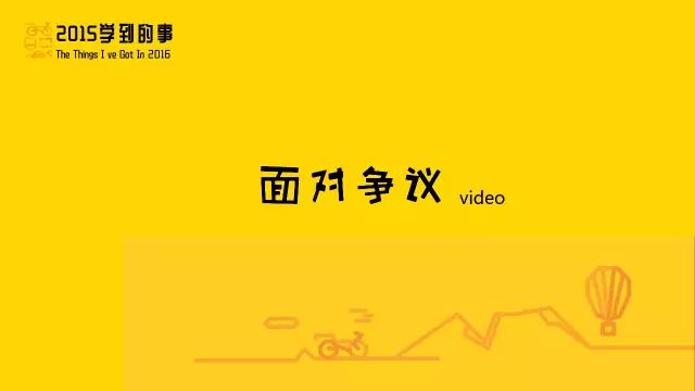 2015年,学到很重要的事情是开始怎么面对争议。这是我在2015年学习的一个大功课,但并不是像大家看到的仅仅只有一个功课,其实是很多。