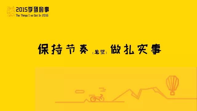 2015年很重要的体会是保持自己的节奏,扎实做事。这一年行动派几乎婉拒了所有的媒体宣传,我们大多数的时间都是给行动派自己的小伙伴交流,做分享。这是看起来平静得没什么声音的一年,我们也没有去找任何投资人,也没有去找大媒体做公关。但是当我们把事情做得很扎实的时候,你会发现很多媒体愿意给你很多机会,很多投资人一定要支持你。在行动派发展半年的时候,我们在各个方面都有了很大的成长,但我们始终没有对外说,对外宣传,因为我们希望自己可以闷声地把事情做得更好。