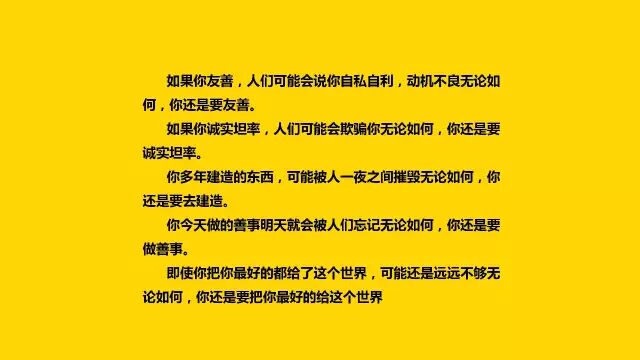 如果你友善,人们可能还是会说你自私自利、动机不纯,无论如何,你还是要友善;
