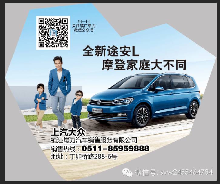 附上“镇江常力全新途安L摩登家庭大不同”文字,