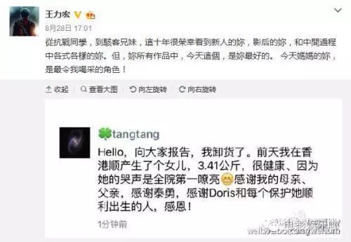 28岁的汤唯首部电影便演出李安导演的《色,戒》,一炮而红,夺下金马奖最佳新人奖,之后因拍摄《晚秋》,与韩国导演金泰勇相恋,2014年步入婚姻礼堂,近日,汤唯发文透露已平安生下女儿。消息一出,跟她合作多次的王力宏也在微博上道贺,“今天妈妈的你,是最令我喝采的角色!”