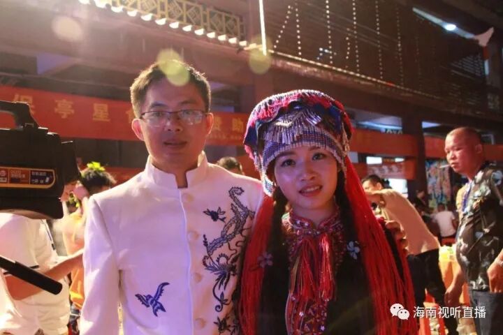 海南著名娱乐主持人林学与歌手曾若馨合影
