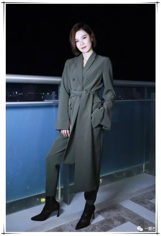 一身墨绿色的雪纺面料的穿搭,配上一双黑色的高跟鞋,腰间这长长的粗腰带散落到膝盖处,加上郁可唯微微上扬的嘴角,给人一种高贵冷艳的气质。
