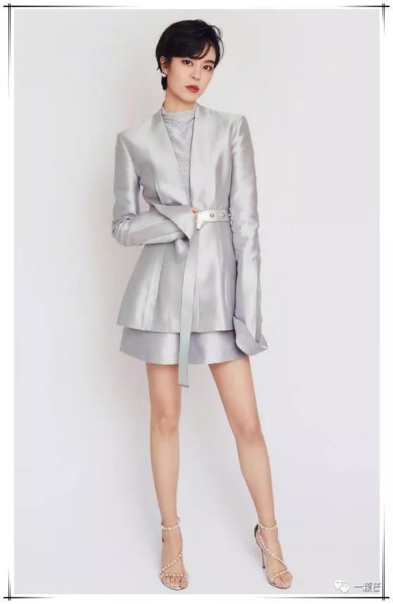 银色的内搭,一条银色的短裙,加上一条银色外套,袖口的设计,简单却非常大气,加上一个细腰带,将郁可唯纤细的腰身完全展现出来,短裙加上高跟鞋更显得腿型漂亮。