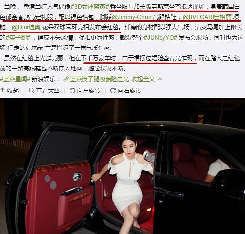 出席活动,通稿都是下面这样的,生怕别人不知道她穿的多华丽。关键是,这样的通稿都是出自她自己的工作室之手。