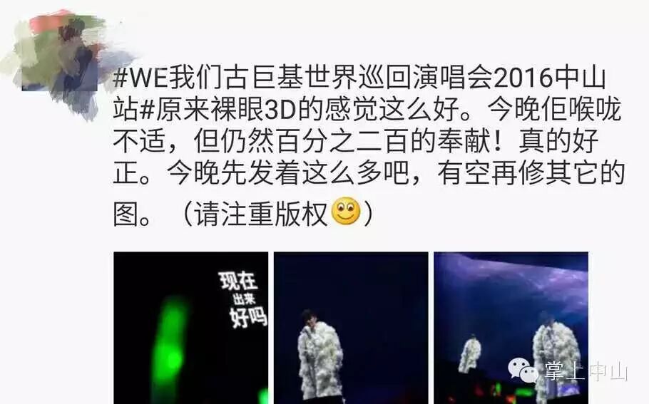此次中山站演唱会,是中山演唱会史上首次全程使用裸视3D特效的演出项目。首次呐!所以现场的3D体验炒鸡棒!
