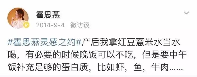 霍思燕早就很大方地在网上分享了自己的瘦身秘诀:拿红豆薏米水当水喝,一周就瘦4-5斤!