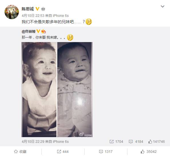 图中是两个小孩子,点开评论才焕然大悟,敢情是在秀恩爱呐。一样的发型,一样的动作,一样的表情,一样的梨涡,除了佟丽娅的眼睛比陈思诚大一些,基本没啥区别。