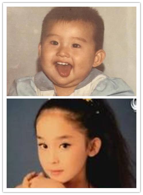 第一组,前辈撑场,这俩人颜值高的真是没sei了,关键小时候的照片放在一起毫无维和感,尽管只是几岁孩子的模样,依然挡不住满满的般配。