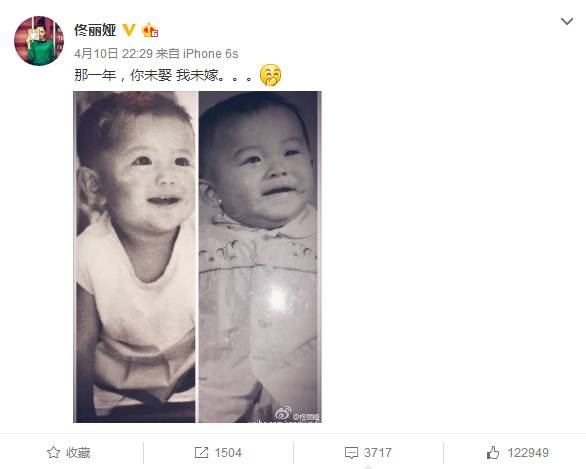 佟丽娅发了一条微博,写道:那一年,你未娶 我未嫁。。。并附了一张拼图。