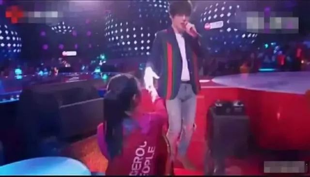 还坐在粉丝群中演唱,不过坐在旁边的女粉丝的表情却抢镜了,一脸羡慕和崇拜。