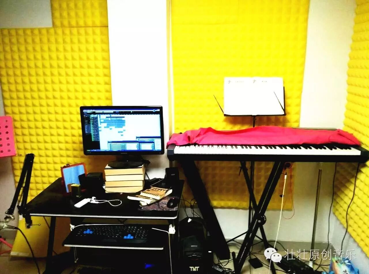 以下分享我的所谓的“音乐工作室”的图片,简单而简陋,不过这里的精髓并非硬件,而是我一颗精于作曲的心。看到我这简陋的设备和我平淡的嗓音大家应该都有信心了,连这样的人都可以写歌,你们当然也可以自己做音乐了!!