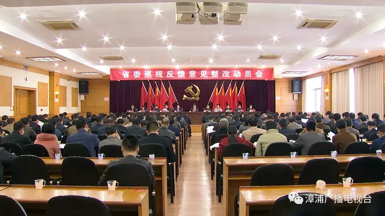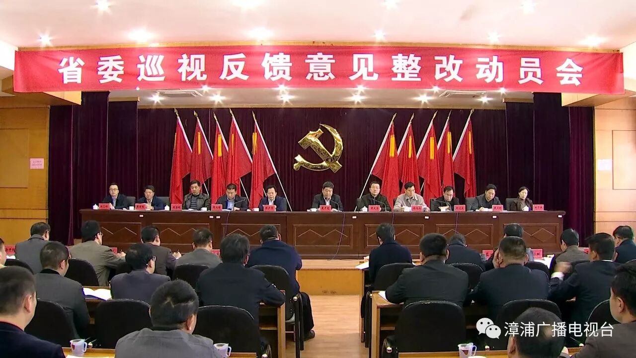县委副书记简洪坤宣读《落实省委巡视三组<关于对漳浦县巡视情况的反馈意见>的整改方案》,陈少华、林培兴、刘达文、黄海明、戴文利、黄国峰、林苏洪、林志辉等县各套班子在家领导,县法院院长、县检察院检察长,各乡镇场、绥安工业区、台创园党政主要领导,县直单位主要负责人、党组书记,省、市驻县单位负责人及县纪委、县委组织部有关同志出席会议。