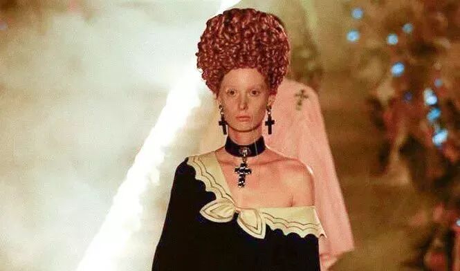 在时装设计中,宗教元素被淡化,更多的代表着反叛、不羁和桀骜不驯。金属设计的十字架作为一种时尚元素,更能营造一种独特的神秘气氛。