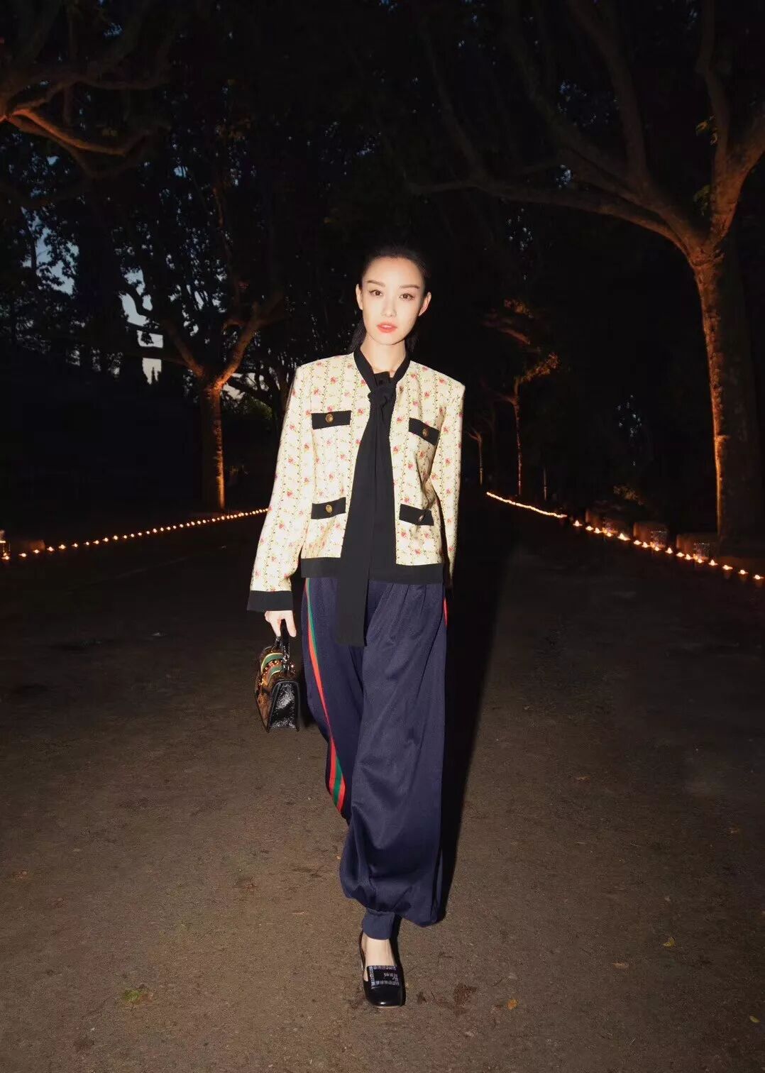私下里,倪妮的街拍大多以淡雅清新的简约风为主。仔细看,她总会用几款极具风格的Gucci单品给整身造型“定调子”: