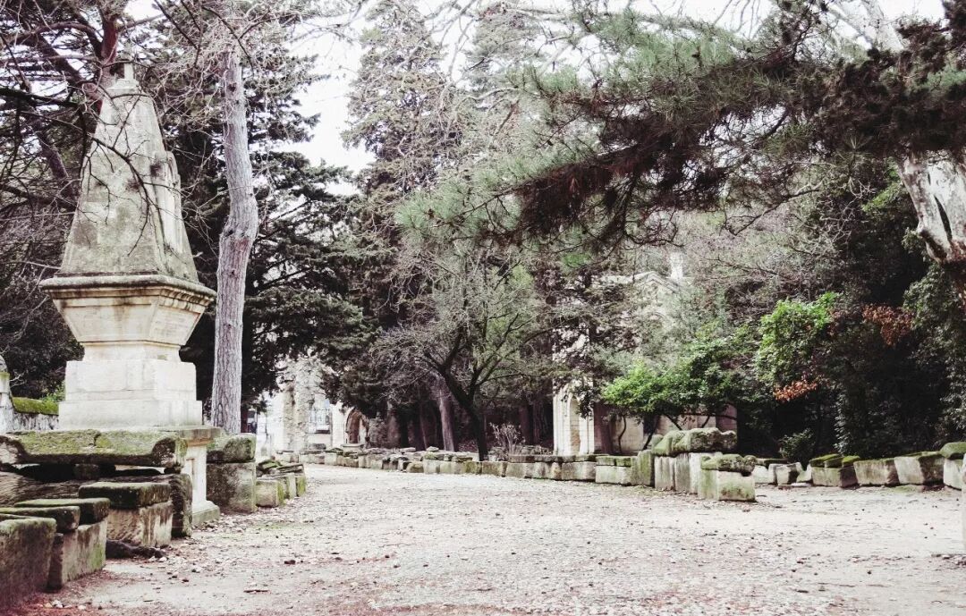 自公元4世纪起,位于Alyscamps公墓遗址作为古罗马时代Arles地区的主要墓地,埋葬值得铭记的公民。1888年,梵高和高更曾以阿利斯康(Alyscamps)作为远行绘画的第一个地点。