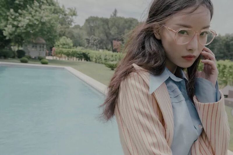 复古的糖果色眼镜和水晶装饰的鞋子为造型注入了少女气息,格调中又带着些许俏皮:
