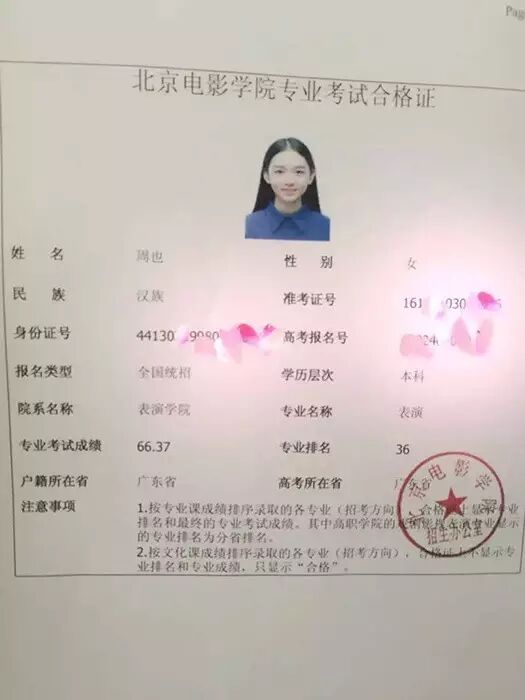 市华罗庚中学国际部女生周也,此前已经通过了北影表演专业的专业考试,在全国众多考生中以66.37分的专业成绩排名36。