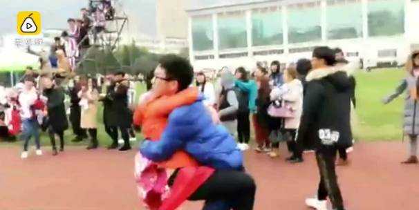 3、云南昆明,某高校运动会上,一名女生在100米短跑比赛中获得第一名。终点处等待她的不仅有红带,还有男友的拥抱。网友:拿什么拯救你,我的单身汪?