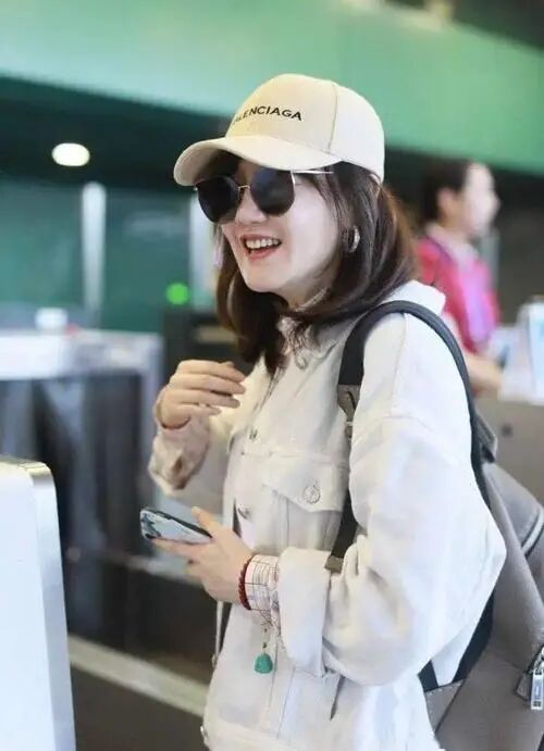 头上戴着一顶米白色的帽子,而且这个时候还有一对墨镜,这样的话显得整个人的脸确实看起来会更小一点。而且这个时候她外面是穿着一件米白色的外套,这些外套穿在身上的话可能会显得比较休闲。