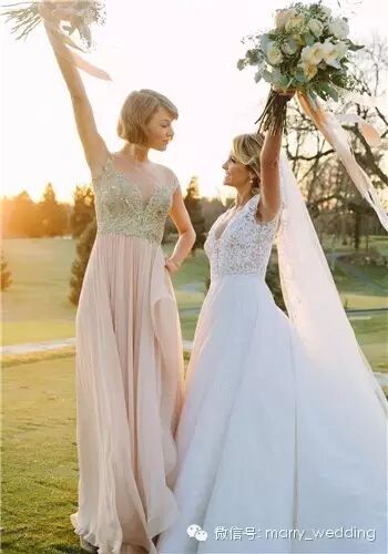 来自美国的新婚女子Britany Maack,不仅找了一位比她高且漂亮的人当伴娘,还是首位蝉联葛莱美年度专辑的知名女性歌手:Taylor Swift!