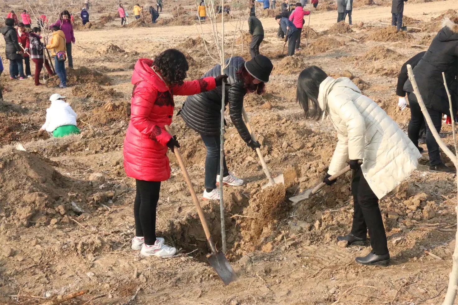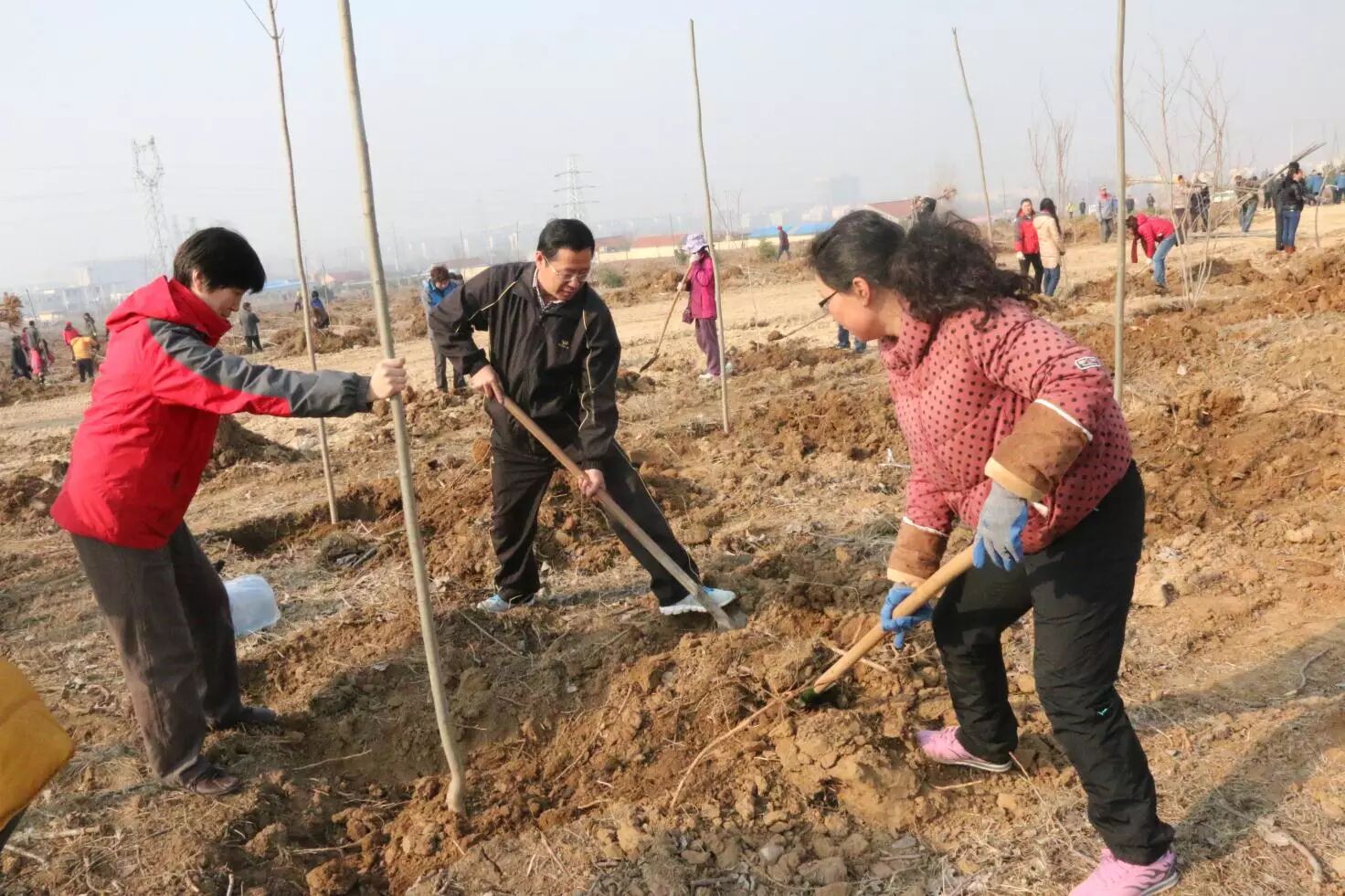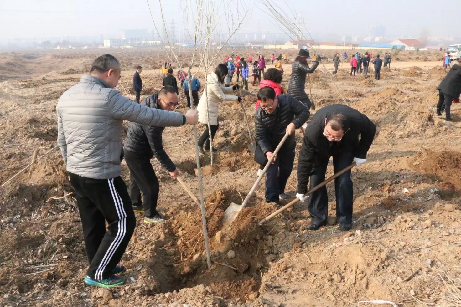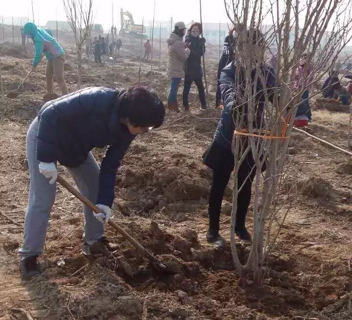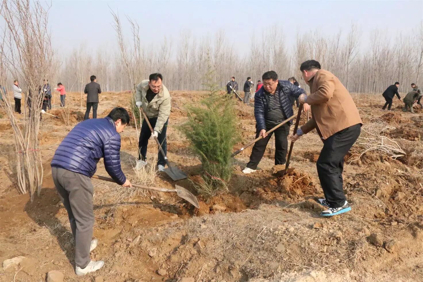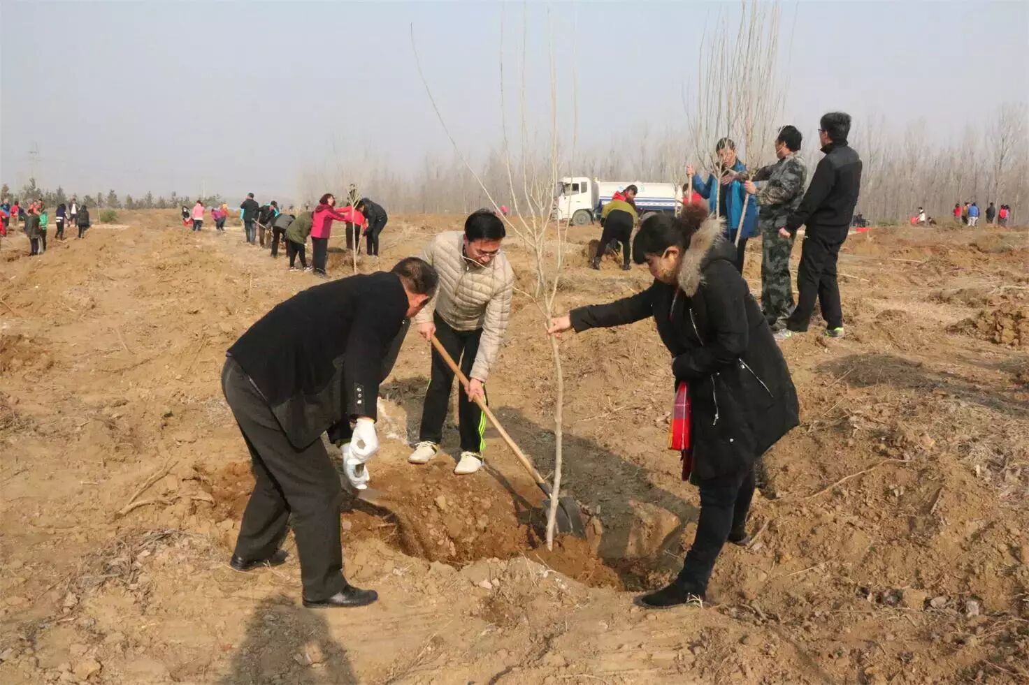 现场干部群众互相配合,铁铲翻飞,热火朝天。一阵忙碌之后,4000余株紫叶李、金叶榆、雪松、樱花、紫荆、白蜡等乔灌木在春风中摇曳生姿,原来的荒山头变成了一片生机勃勃的小树林。