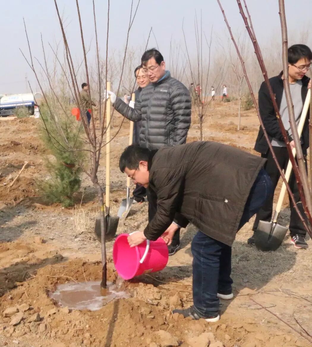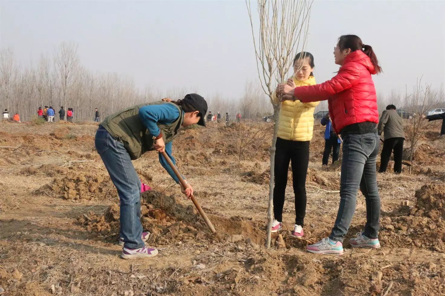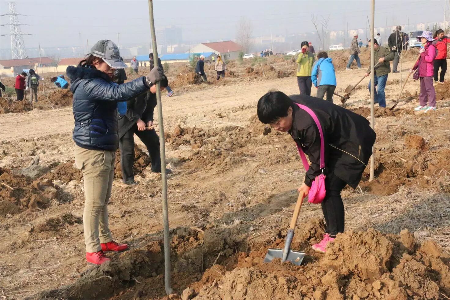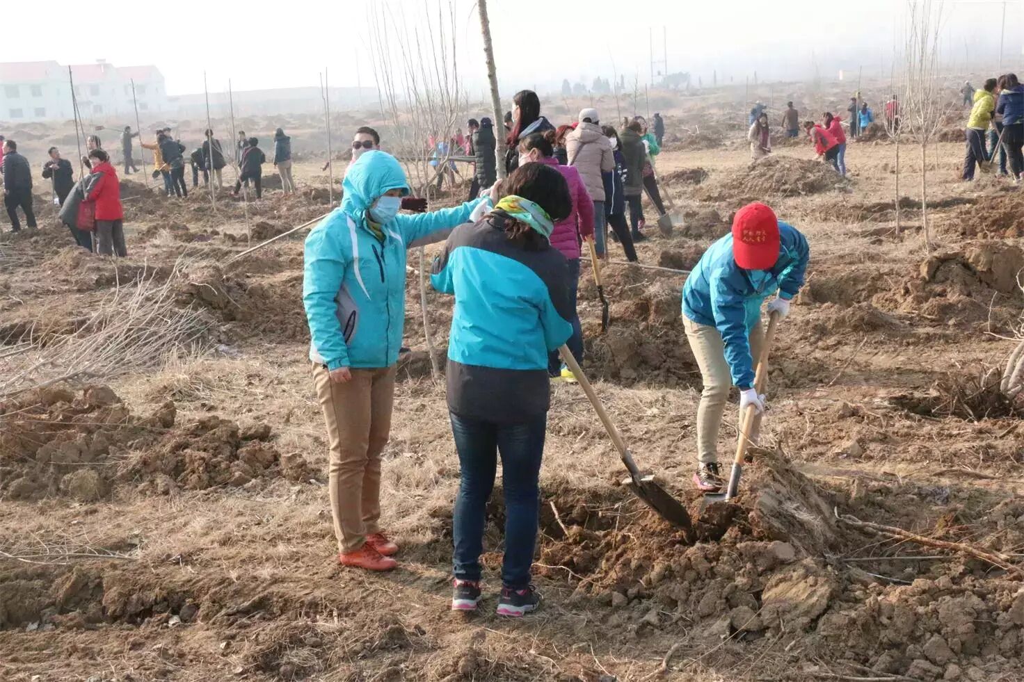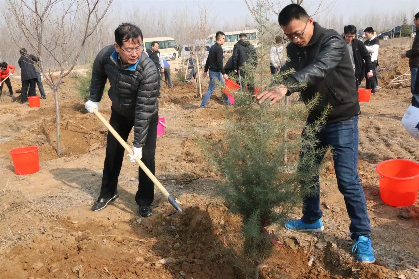 现场干部群众互相配合,铁铲翻飞,热火朝天。一阵忙碌之后,4000余株紫叶李、金叶榆、雪松、樱花、紫荆、白蜡等乔灌木在春风中摇曳生姿,原来的荒山头变成了一片生机勃勃的小树林。