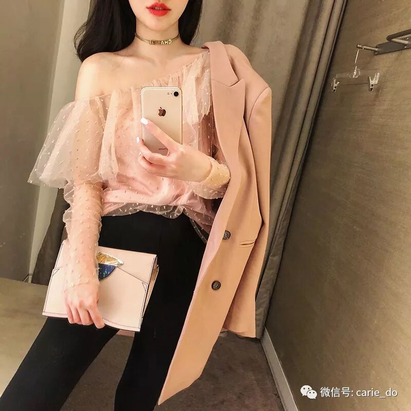 【「卢洁云」CARIEDO 美到骨子里 时髦小仙女斜肩波点粉色网纱上衣】,复制这条信息¥Quum0pzjk9m¥后打开手淘