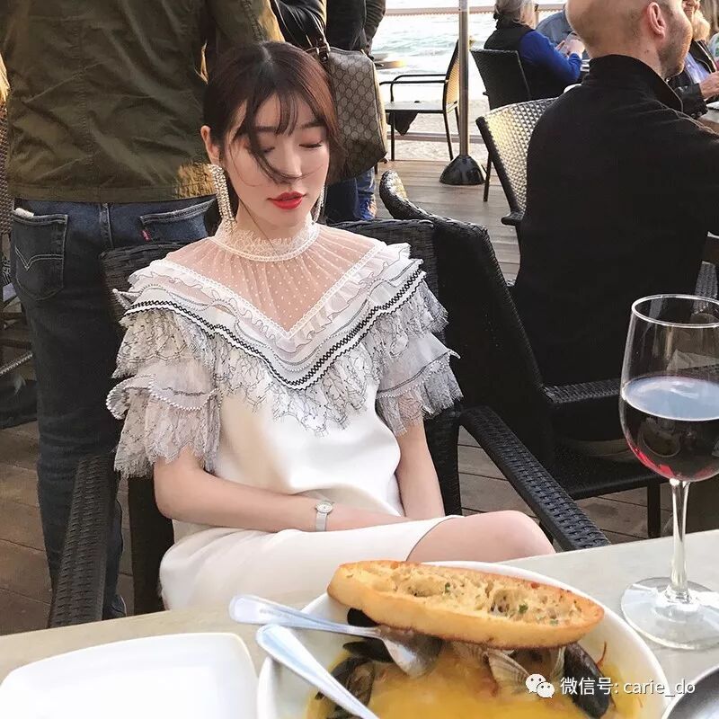 与镂空蕾丝搭配 形成透视感效果