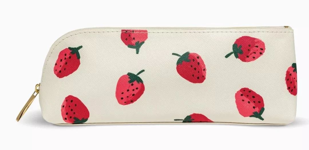 草莓铅笔袋,小小的不占地方,可以放进铅笔的长度(也可以当做化妆包),同系列的还有铅笔、卷笔刀、橡皮和尺子,搭配的文具真的很精致,小细节很美好。