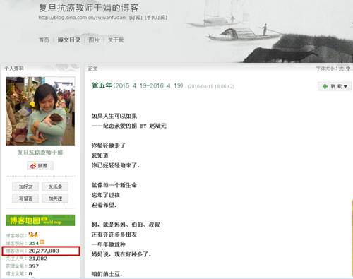 5年过去了,截至今日,于娟的新浪博客访问量已突破2000万。